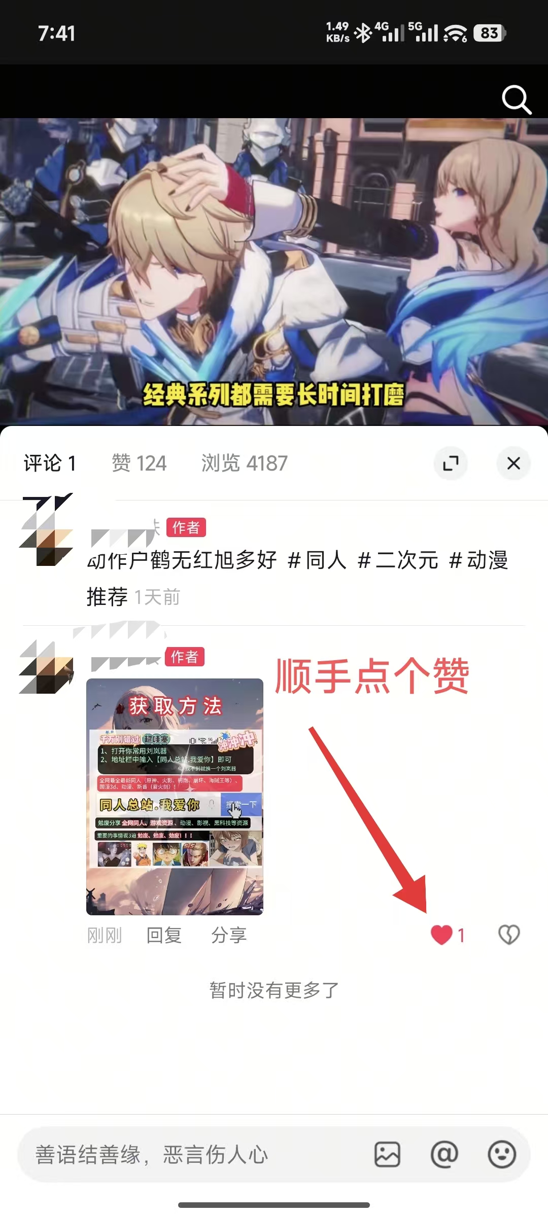 第二步:在所有发布视频的评论区下面 评论下面这张图片